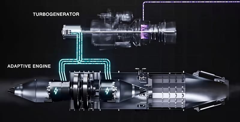 The engine design separates the fan and compressor components and drives the compressor separately with high-performance electric motors. A turbogenerator produces electricity that powers the electric motors which in turn drive the compressor and turbofan. This enables variation of air compression for optimal efficiency at different speeds.