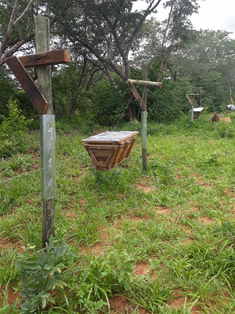 The method known as elephant beehive fencing (EBF), involves the setting up of beehives around a particular field with beehives hanging on wire or otherwise. When elephants come they shake the beehives. Once disturbed, bees are quick; they sting, sending the elephants back into the forest. If this happens, the farmer is protected, and the crops are protected too. The farmer wins.