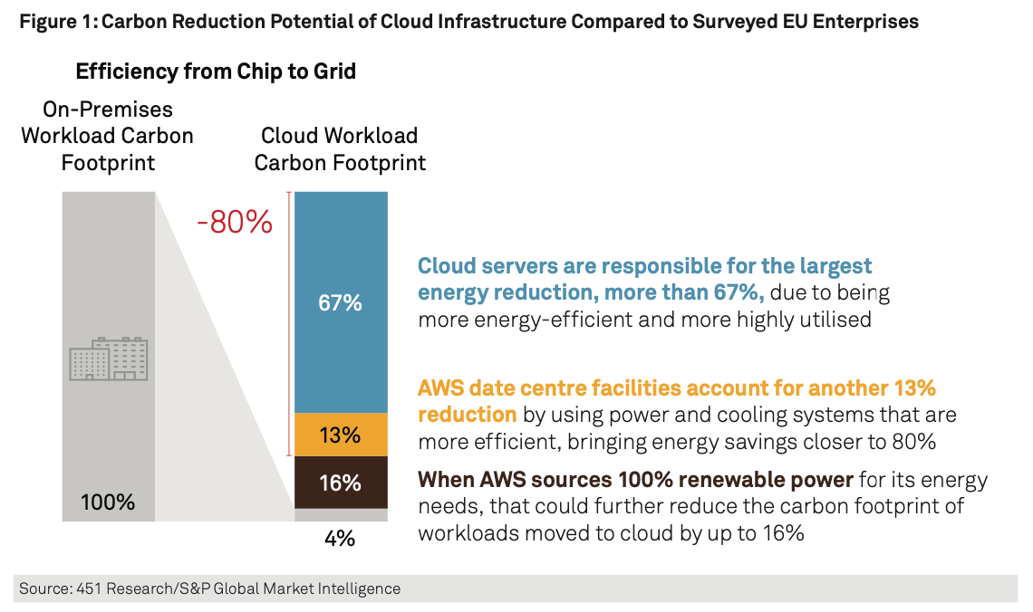 "Cloud providers use server systems with great attention to power optimisation, integrating the very latest components. These servers run at higher utilisation levels, leveraging the cloud providers' ability to share and dynamically allocate resources among multiple customers," writes 451 Research in the report Saving energy in Europe by using Amazon Web Services.