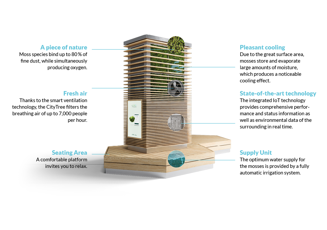 This tree is called CityTree and comes from a company called Green City Solutions, based in Germany.