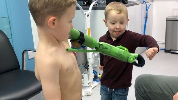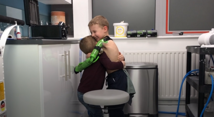 When Jacob was born eight weeks early, most of his left arm was missing. Just as with Sol Ryan, the UK's National Health Services (NHS) and most private companies said that there were no solutions. Jacob's parents, Gemma and Chris, were told that functioning prosthetic arms were not an option when the limb ends above the elbow.