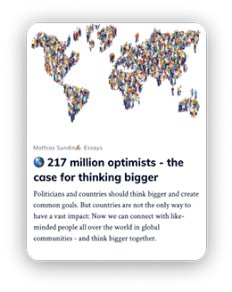 In our community of fact-based optimists we focus on opportunities. Here you find the people that youβll create the future together with.