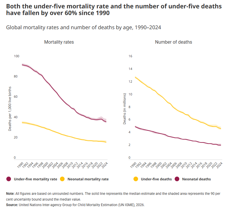 - Mortality among children under five has fallen by approximately 60 percent since 1990, thanks to investments in vaccinations, newborn care and nutrition.