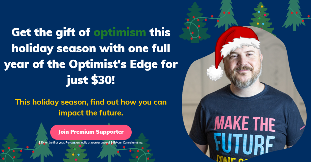 You also improve your own possibility of having a positive impact on the future, by getting access to the Optimist's Edge.