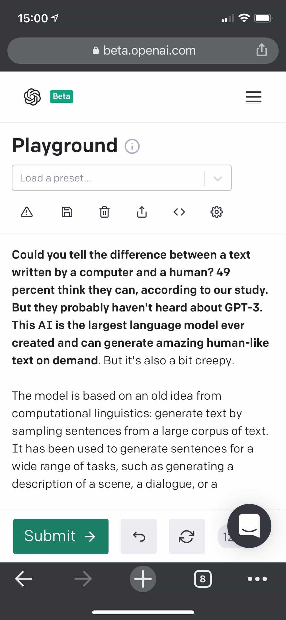 So, how did you do? Did you honestly guess at any point that the text you read was generated by GPT-3?
