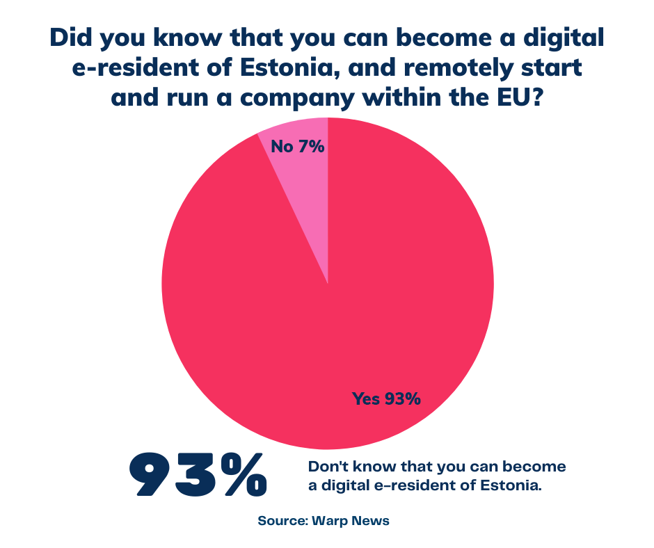 In fact, in our recent Warp survey, 97 percent of the recipients responded that they do not know about e-residency and Estonia's digital community. This means that the few 3 percent that in fact are aware of the phenomenon have a really good chance of capitalizing on the benefits associated with being one step ahead.