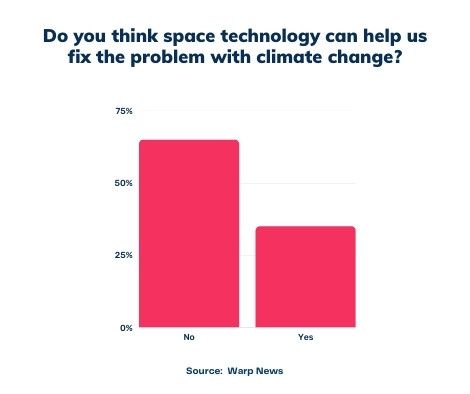 Almost two-thirds (65 percent) do not believe that space technology can help us solve the problem of climate change, according to a survey by Warp News.