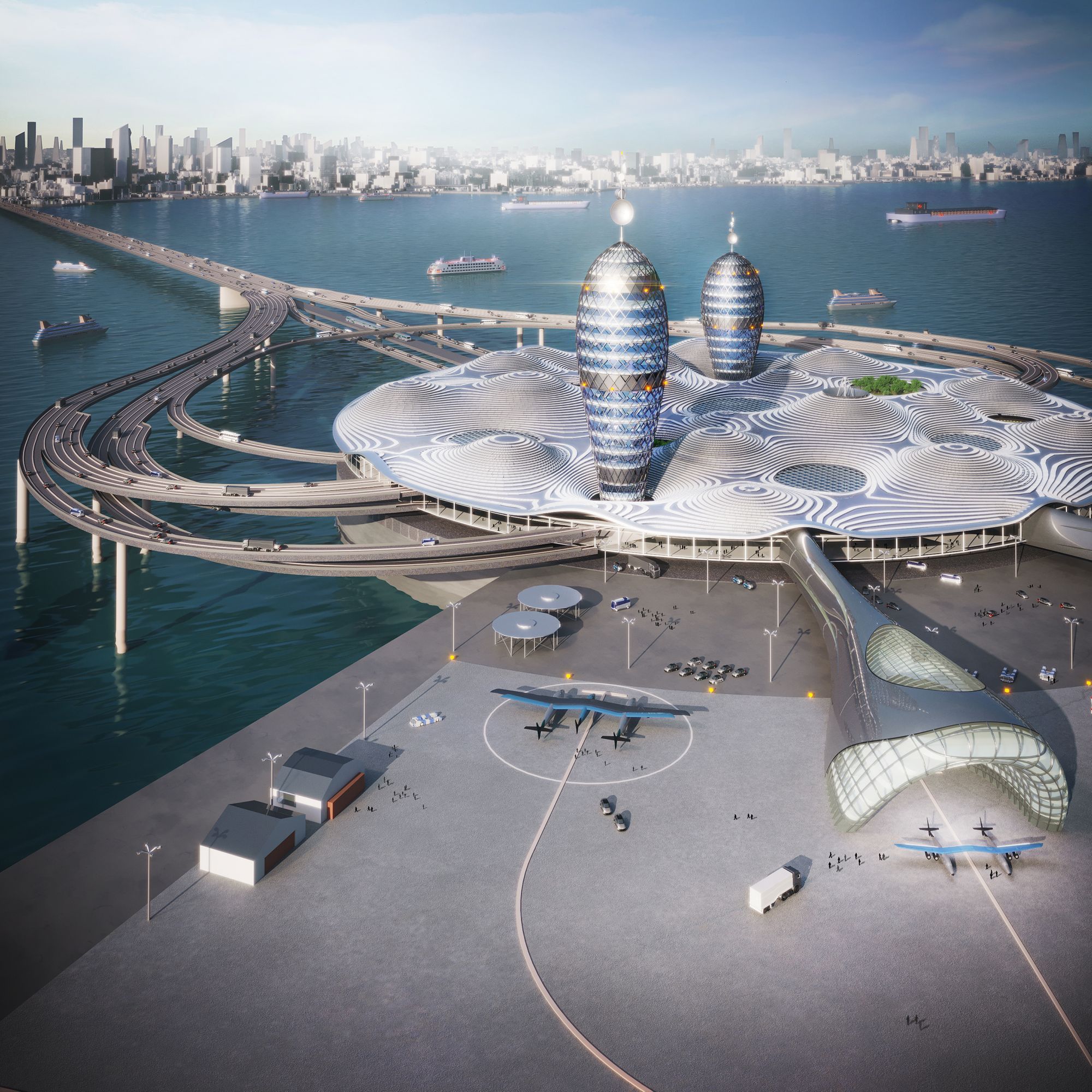 Spaceport City is a transportation hub dedicated primarily for space travel, but also connected to other means of transportation. It also lets visitors discover and learn about space.