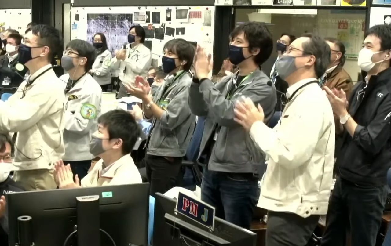 (Photo credit: JAXA; scientists celebrating the sample return completion)