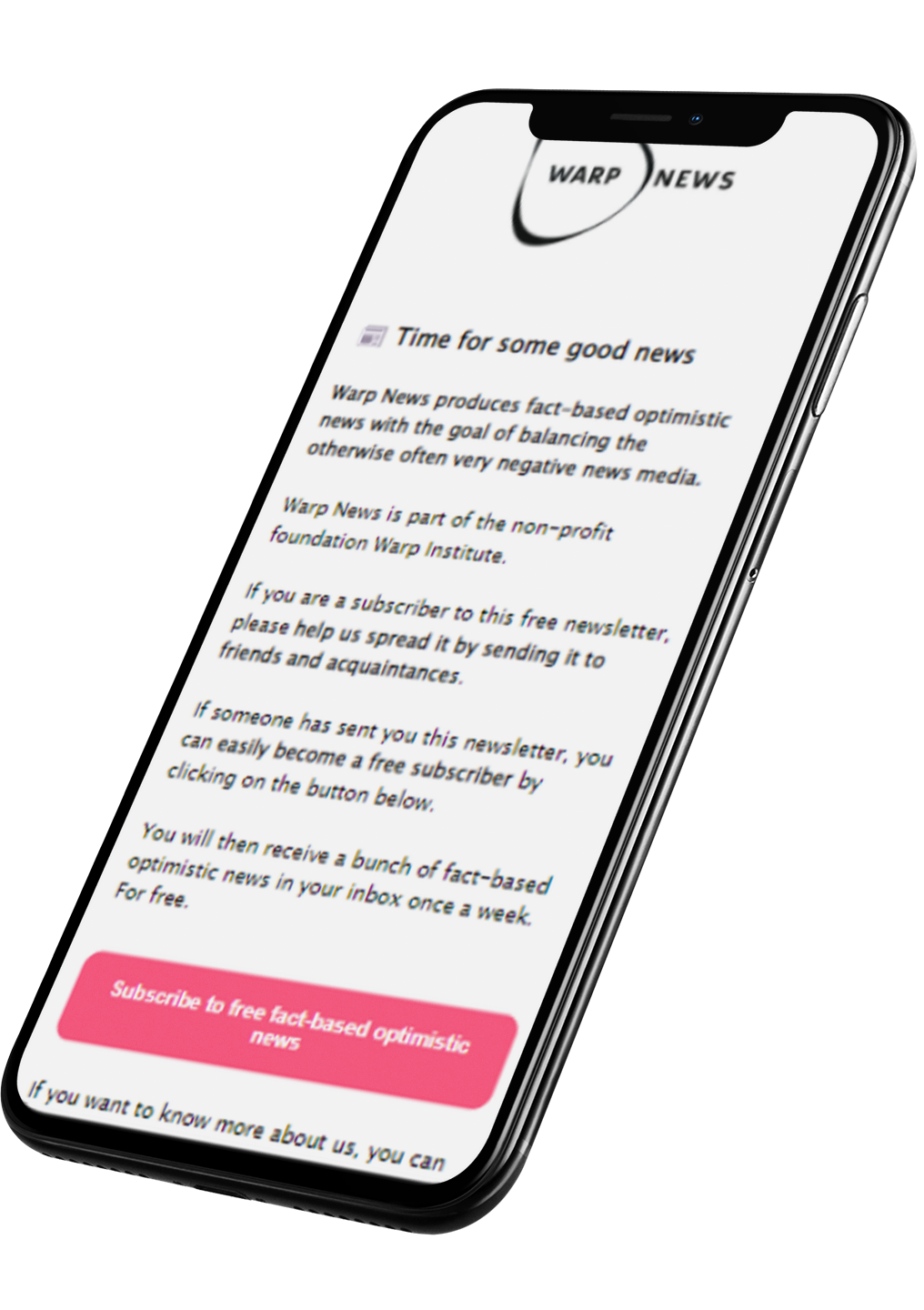 Our fact-based optimistic news counters the negative excess in other news media, so we get a balanced and accurate picture of reality. Mainstream news says "It's too good to be true". We say the opposite.